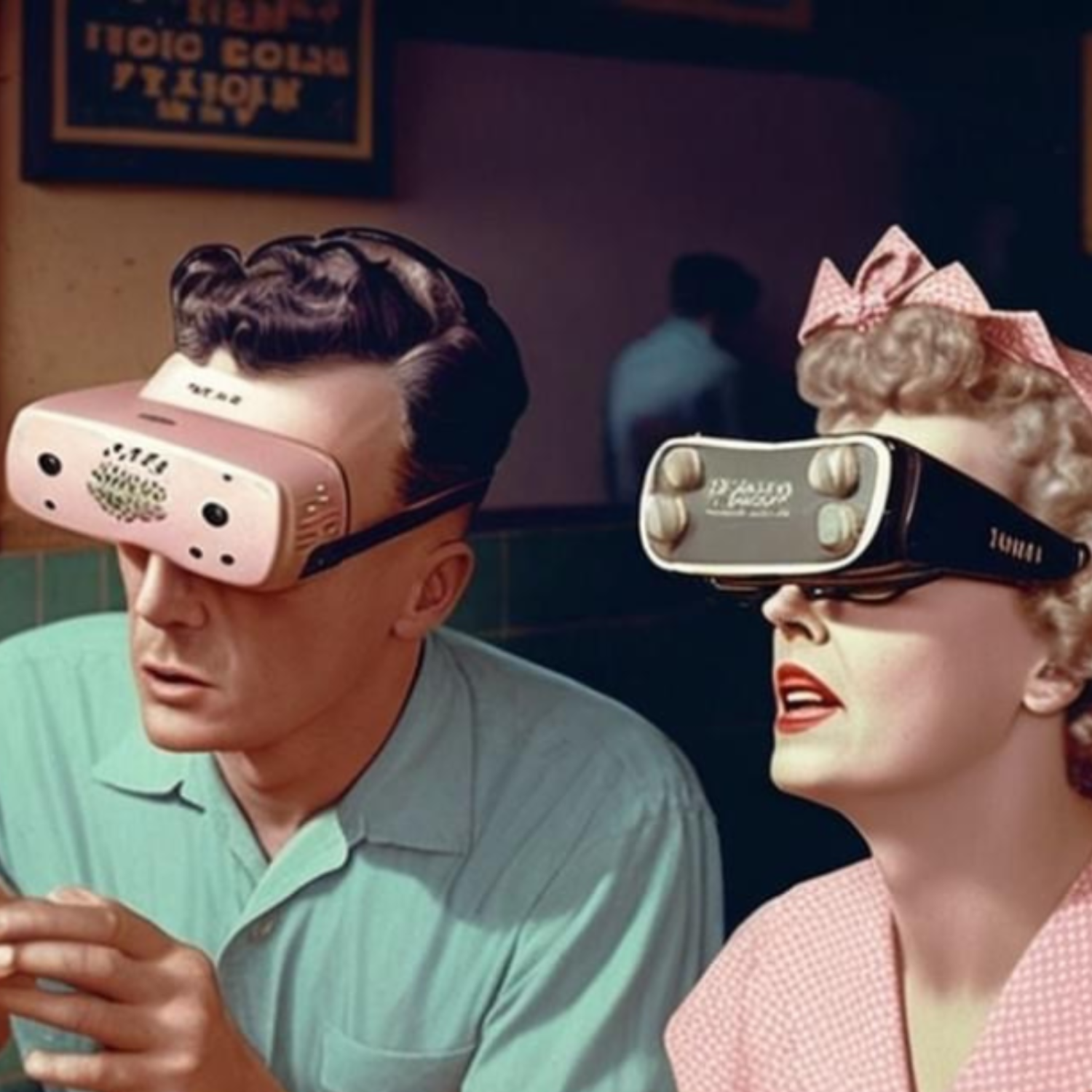 VR = Virtual Reality/Virtuell verklighet. Med hjälp av ett headset/speciella glasögon, hörlurar och handkontroller kan du gå in i en virtuell/simulerad värld som du kan interagera med. Målet med tekniken är just att förvandla det virtuella/simulerade till verklighet. Används oftast för spel men VR kan också användas för att skapa konst, ha sociala interaktioner och kan till och med användas som ett fitnessverktyg. VR används också som ett verktyg för utbildning i säkerhet inom flera industrier och verksamheter, t.ex. gruvindustrin, vård och omsorg m.fl.